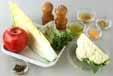 器にリンゴ、白菜、カリフラワー、貝われ菜を盛り合わせ、あればケイパーを散らす。食べる直前に<ドレッシング>をかけていただく。