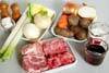 牛肩肉、牛すじ肉、豚肩肉、鶏もも肉は2.5~3cm角に切る。牛脂は2~3等分に切る。