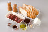 3のローリエは除き、包丁でたたくように粗いペースト状にする。塩、コショウで味を調える。トーストしたフランスパンにのせ、器に盛る。