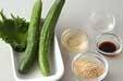 キュウリは両端を落として薄い輪切りにする。塩少々でもみ、5分位置く。水気が出ればサッと水洗いしてしっかり水気を絞る。