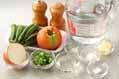 ひと煮立ちさせて固形ブイヨンが煮溶ければ、トマト、オクラを加え、2分煮て塩コショウで味を整える。器に注ぎ、刻みネギを浮かせる。