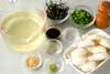 器に1のお餅を入れ、刻み細ネギ、炒り白ゴマ、ワサビを入れ、熱々の2の<合わせだし>を注ぎ、刻みのりをかける。