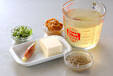 鍋にだし汁を入れて強火にかけ、煮立ったら豆腐を加えてみそを溶き入れる。