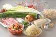 豚バラ肉、木綿豆腐、生シイタケ、エノキ、ニラ、白ネギ、白菜、豆モヤシ、玉ネギを加え、火の通った物から、煮汁と共にいただく。煮汁が少なくなれば、水とキムチ鍋の素を加える。