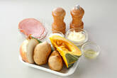 ハムは半分に切り、更に細切りにする。