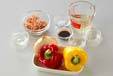 パプリカは焼き網にのせ、強火で表面が真っ黒になるまで焼き、冷水に取って真っ黒な皮をむく。縦半分に切ってヘタと種を取り、食べやすい大きさに切って<合わせだし>に漬ける。(中は熱いので注意して下さい)