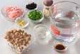 シメジは石づきを切り落とし、小房にほぐす。
