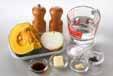 鍋に玉ネギを敷き、カボチャを入れ、<合わせ調味料>を加え、落とし蓋をして火にかける。