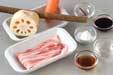 豚薄切り肉は1cm幅に切る。