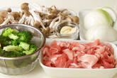 煮立ってくれば、<ソース>を加え、再び煮立ってくれば5~6分煮てバターを加え、塩コショウで味を整え、最後にブロッコリーを加える。