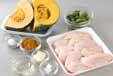 ビニール袋に手羽先、カボチャ、カレー粉大1を入れ、よくもみ込む。