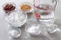 <電子レンジでもできます> 耐熱ボウルにわらびもち粉、砂糖、水を入れてよく混ぜ合わせる。ラップをして電子レンジで2分加熱し、木ベラ等でよくかき混ぜる。再び電子レンジで2分加熱して混ぜ・・とダマがなく半透明になるまで、力を入れて混ぜながら、合計8~10分加熱して混ぜればOK!