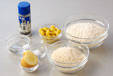 もち米、米を炊く30分以上前に合わせ、水洗いしてザルに上げておく。