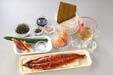 ウナギ蒲焼きは頭を落として縦半分に切り、横1cm幅に切る。