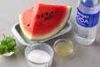 ミキサーにスイカ、グラニュー糖、レモン汁を入れ、なめらかになるまで撹拌し、網でこす。