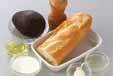 温めておいたオーブントースターでフランスパンを軽く焼き、ニンニクの切り口をパンにこすりつけて香りをつける。