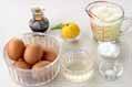 2回に分けて巻くので、卵3個、<調味料>の半量づつを混ぜ合わせる。