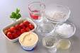 <まるごとイチゴシロップ>を作る。イチゴは水洗いしてヘタを取り、他の材料と共に小さな鍋に入れ、中火にかける。煮立ってきたら火を弱め、アクを取りながら少しトロミがつくまで煮詰めて火を止める。粗熱が取れたら清潔な容器に入れ、冷蔵庫で冷やしておく。