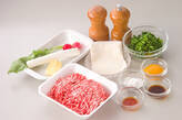 ボウルに<種>の材料を入れて手でよく混ぜ合わせ、粘りが出れば、片栗粉を加えて混ぜ合わせ、ワンタンの皮で形よく包む。