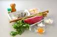 むきエビは背ワタを取り、塩少々を入れた水で洗って水気をきる。大きい物は半分に切る。