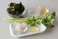 浸けておいたチリメンジャコにワカメ、ミツバを加えてサッと混ぜ合わせ、器に盛る。