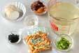 干しワカメは水で柔らかく戻し、水気を絞る。長い場合はザク切りにする。