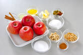 耐熱容器に<シナモンナッツ>を敷き、芯をくり抜いたリンゴを並べる。中央に<レーズンバター>をのせ、シナモンスティックを芯の部分に挿し、溶かしバターとレモン汁を掛ける。