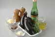 ナスはヘタを切り落とし、縦4つに切って水に放つ。