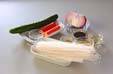 キュウリは両端を落として斜め薄切りにし、更にせん切りにする。