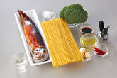 塩を入れたたっぷりの熱湯にスパゲティを入れ、くっつかないように時々菜ばしで混ぜながら、指定時間より少し短い時間ゆでてザルに上げる。ゆであがる20~30秒前にブロッコリーを加え一緒にゆでる。
