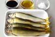 鮎は包丁の先で軽くしごく様にヌメリとウロコをこそげ取る。サッと水で洗い、水気を拭き取っておく。(今回は串を打たずに焼きますが、串を打つ場合は、口から長めの竹串を刺し、裏側の腹の中程に串を出し、表側に串を見せない様にして尾の上へ、と縫う様にして串を 打つ)