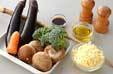 フライパンにオリーブ油を強火で熱し、ナス、シイタケ、新ゴボウ、ニンジンを加えて少ししんなりするまで炒め合わせる。