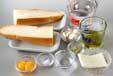 ニンニクは皮をむき、縦半分に切って芽を取る。小鍋にオリーブ油と一緒に入れ、弱火にかけてゆっくりと薄いキツネ色になるまで揚げ、そのまま冷ます。サンドイッチ用のパンは耳を取り、1cm角に切って170℃の揚げ油でカリッと揚げ、油を切る。(クルトンになります)