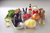 バターを塗った耐熱容器にナスを入れ、1の<ミートソース>を掛け、ちぎったバジルをのせ、ピザ用チーズを全体に散らす。