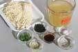 エノキは根元を切り落として3等分の長さに切り、根元をほぐす。