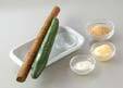 ゴボウはたわしできれいに洗い、すりこぎで叩き、3cmの長さに切る。
