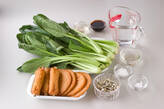 青菜は根元を切り落とし、きれいに水洗いして4cmの長さに切る。