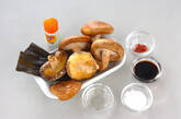 昆布は水でもどしてマッチ棒位に切る。干しシイタケは水又はぬるま湯でもどして薄切りにし、生シイタケも薄切りにする。