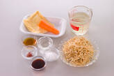 油揚げは熱湯をかけ、油抜きをしてニンジンにあわせて細切りにする。