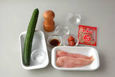 <合わせダレ>に1のささみを加え混ぜ合わせる。キュウリを加え、全体に混ざれば、器に盛り分ける。