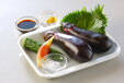 ナスはヘタを切り落として薄い輪切りにし、キュウリは薄い輪切りに、ミョウガは縦半分に切って更に斜め薄切りにする。