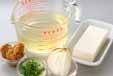鍋にだし汁を入れて強火にかけ、煮立てば、玉ネギを加え、しんなりすれば、豆腐を加えてみそを溶き入れる。