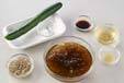 もずく、ジュンサイ、キュウリを入れ、<合わせ酢>を注ぐ。