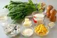 フライパンにバター10g、コーンを入れ、コーンに薄く炒め色が付けば塩コショウをして、1の耐熱容器に入れる。