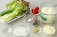 レタスはせん切りにして水に放ち、パリッとすればしっかり水気を切る。