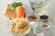 ニンジンは皮をむき、3cmの長さのせん切りにする。