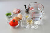 トマトは水洗いしてヘタをくり抜き、1cm角に切る。