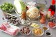 イカは足を胴から引き抜き、胴はエンペラをはずし、切り開いてきれいに洗い、食べやすい大きさに切る。足は目の下で切り離し、足先を切り落として2本づつに切り分ける。エンペラは、食べやすい大きさに切る