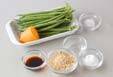 サヤインゲンは軸側を少し切り落とし、3~4cmの長さに切る。