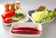 レタス、サニーレタスはサッと水洗いし食べやすい大きさにちぎって冷水に放ち、シャキッとしたらしっかり水気を切って盛り付ける直前まで冷やしておく。